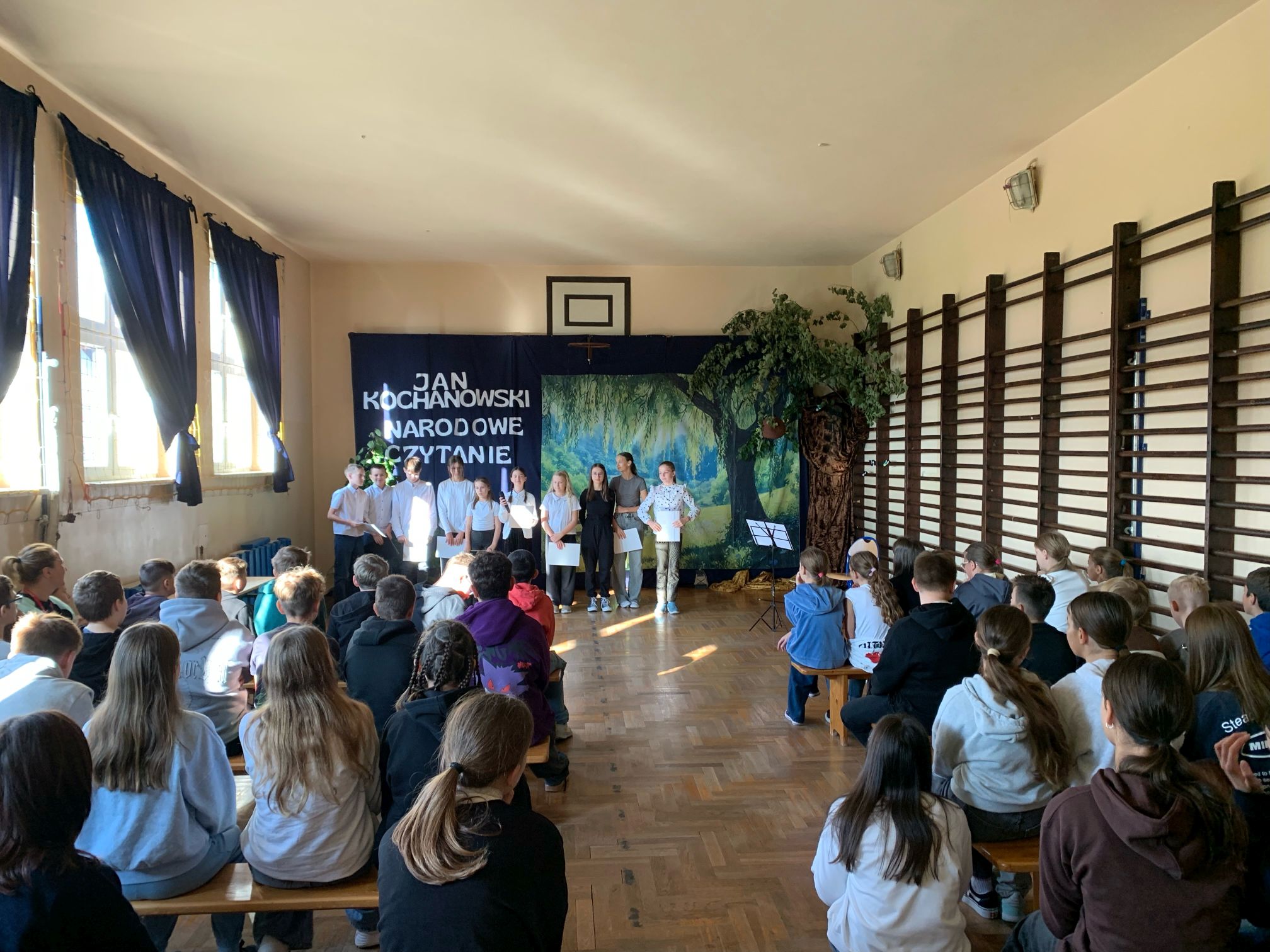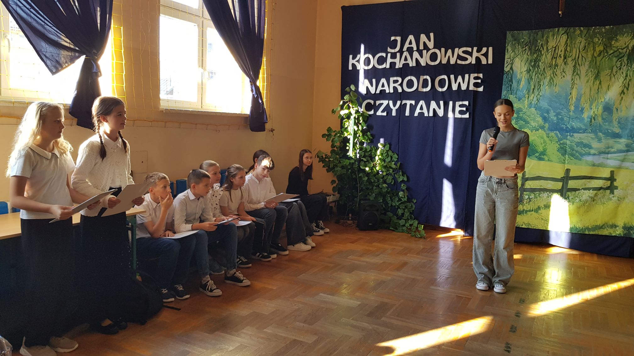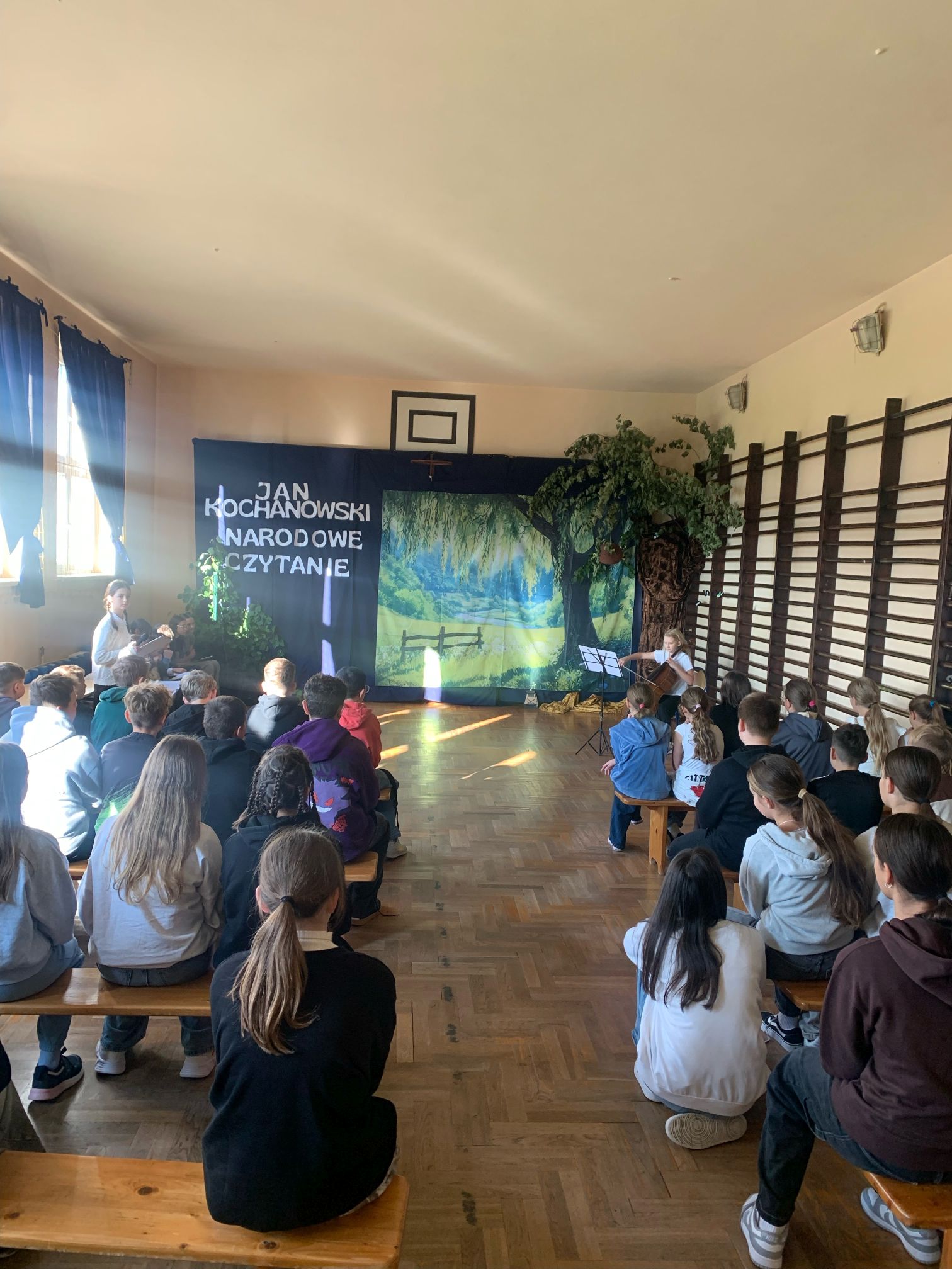 W naszej szkole odbyło się wyjątkowe wydarzenie z okazji akcji Narodowe Czytane 2025, w której uczestniczyli uczniowie klas 4-8. Spotkanie rozpoczęło się wprowadzeniem w wyjątkowy nastrój – jedna z uczennic zagrała na wiolonczeli, tworząc podniosłą i refleksyjną atmosferę. Następnie uczniowie prezentowali wybrane utwory Jana Kochanowskiego: recytowali treny, fraszki oraz pieśni. Każdy z występujących z zaangażowaniem interpretował teksty, podkreślając ich ponadczasowy charakter i bogactwo języka polskiego. Uroczystość była okazją do wspólnego przeżywania literatury oraz integracji szkolnej społeczności.
