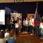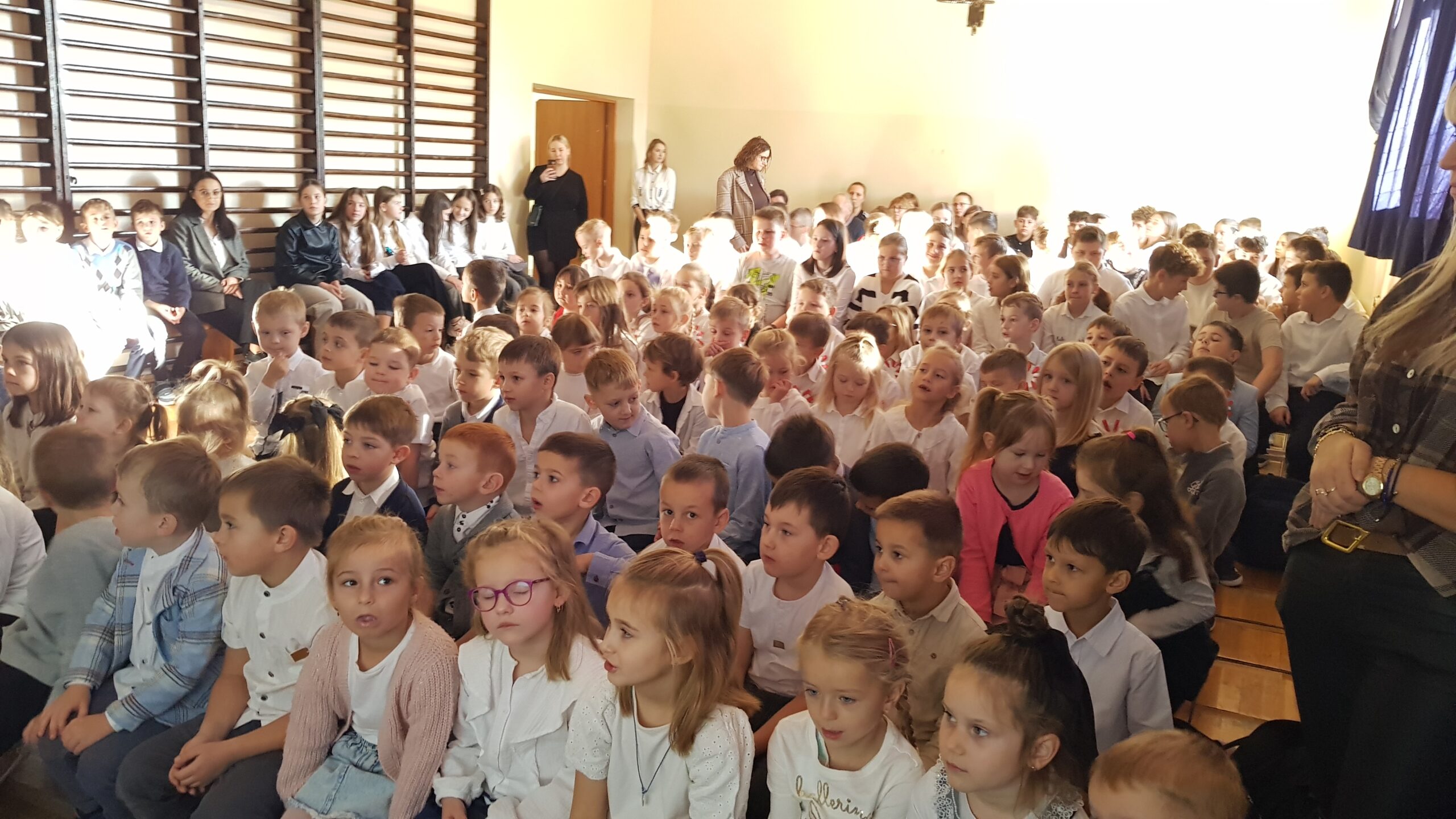 Następnie cała społeczność szkolna wspólnie odśpiewała wszystkie zwrotki hymnu narodowego, oddając hołd tym, którzy walczyli o niepodległość naszej ojczyzny. Po części oficjalnej uczniowie udali się do swoich klas, gdzie czekały na nich specjalnie przygotowane zadania związane z tematyką niepodległościową.
