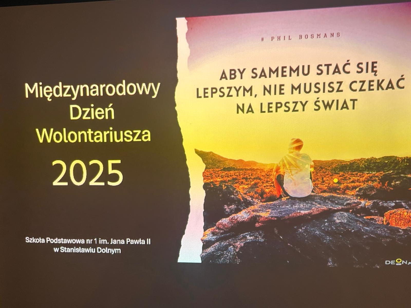 Międzynarodowego Dnia Wolontariusza. Program przygotowali uczniowie klas VII i