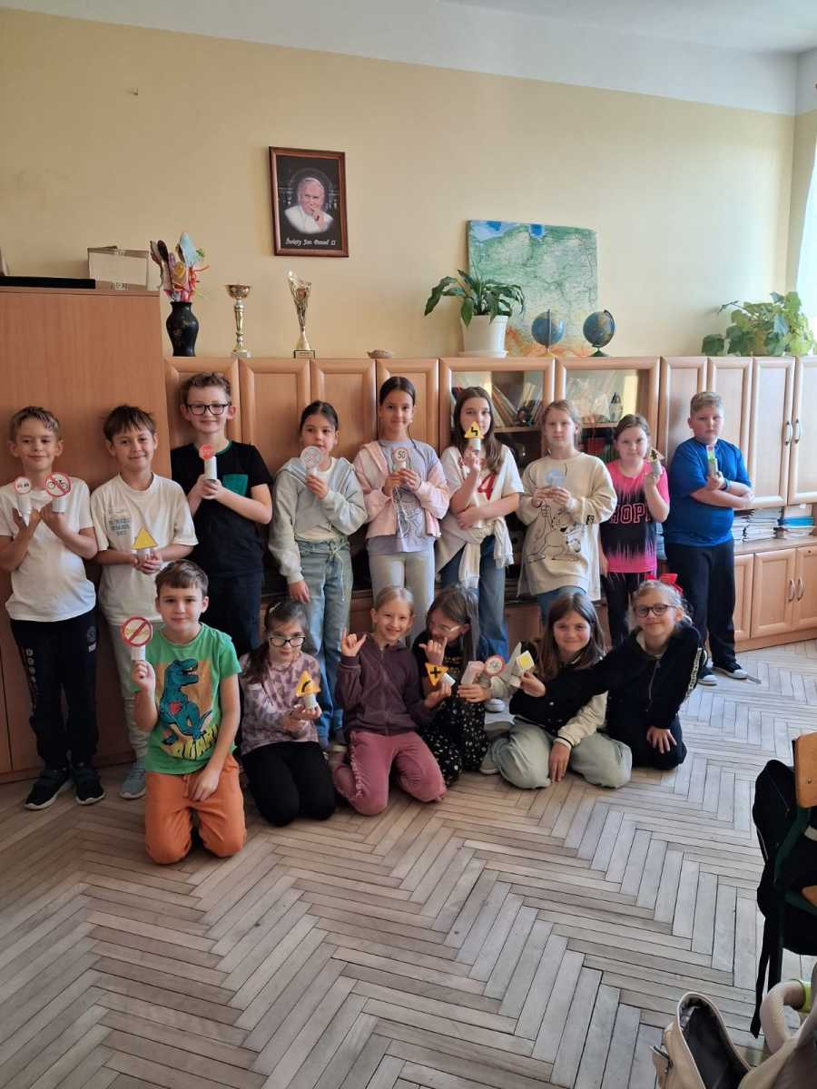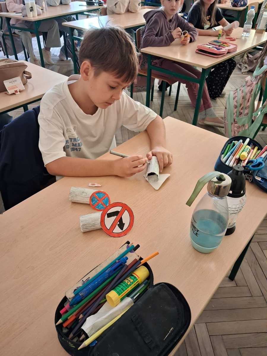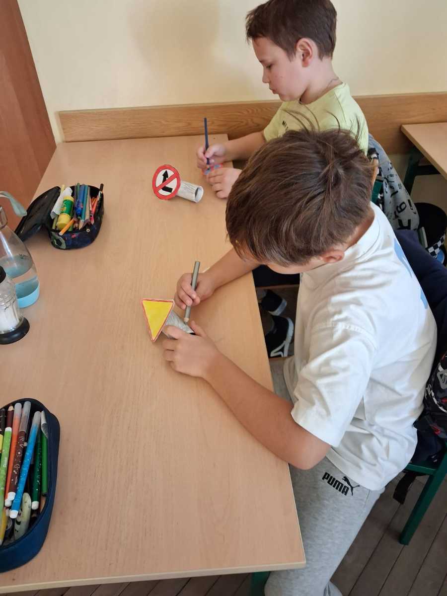 Uczniowie klasy trzeciej w ramach akcji Odblaskowa Szkoła wykonali znaki drogowe. Dzięki temu poznali i utrwalili rodzaje znaków i ich przeznaczenie.