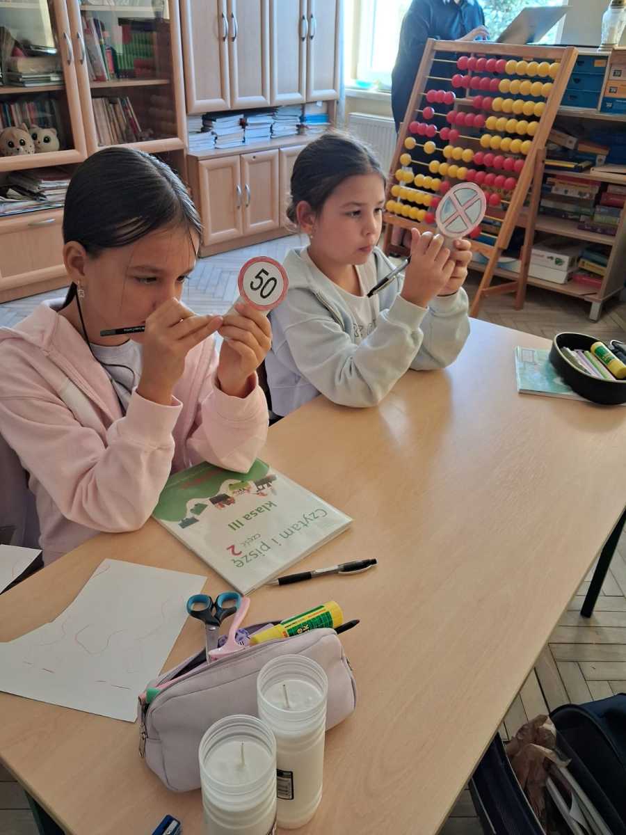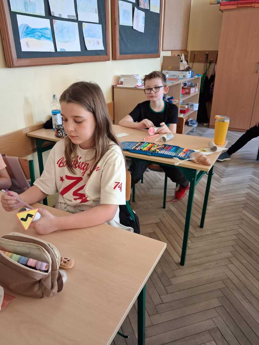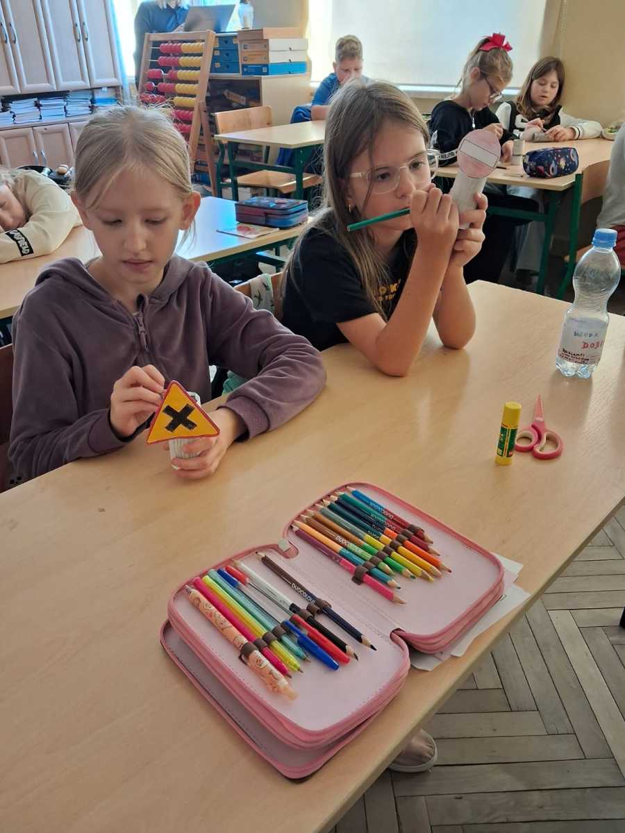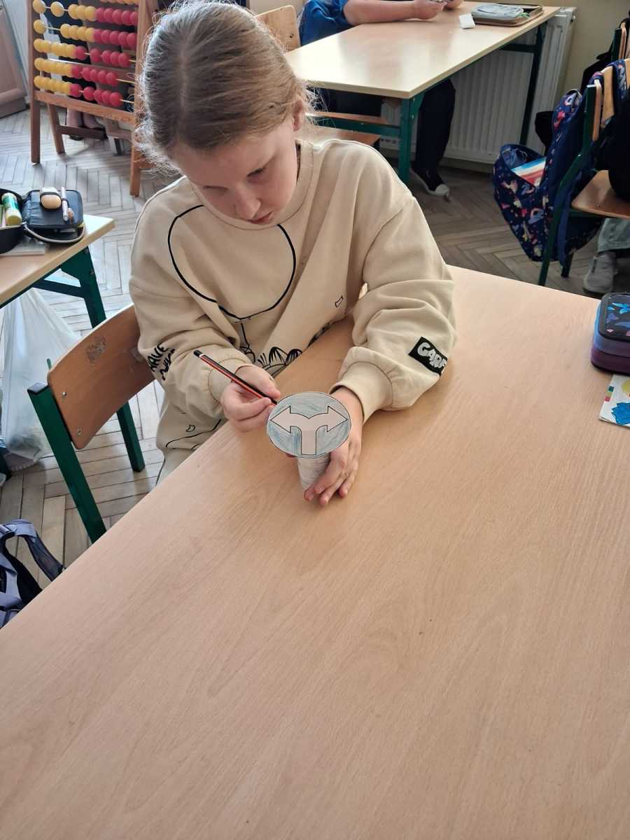 Uczniowie klasy trzeciej w ramach akcji Odblaskowa Szkoła wykonali znaki drogowe. Dzięki temu poznali i utrwalili rodzaje znaków i ich przeznaczenie.