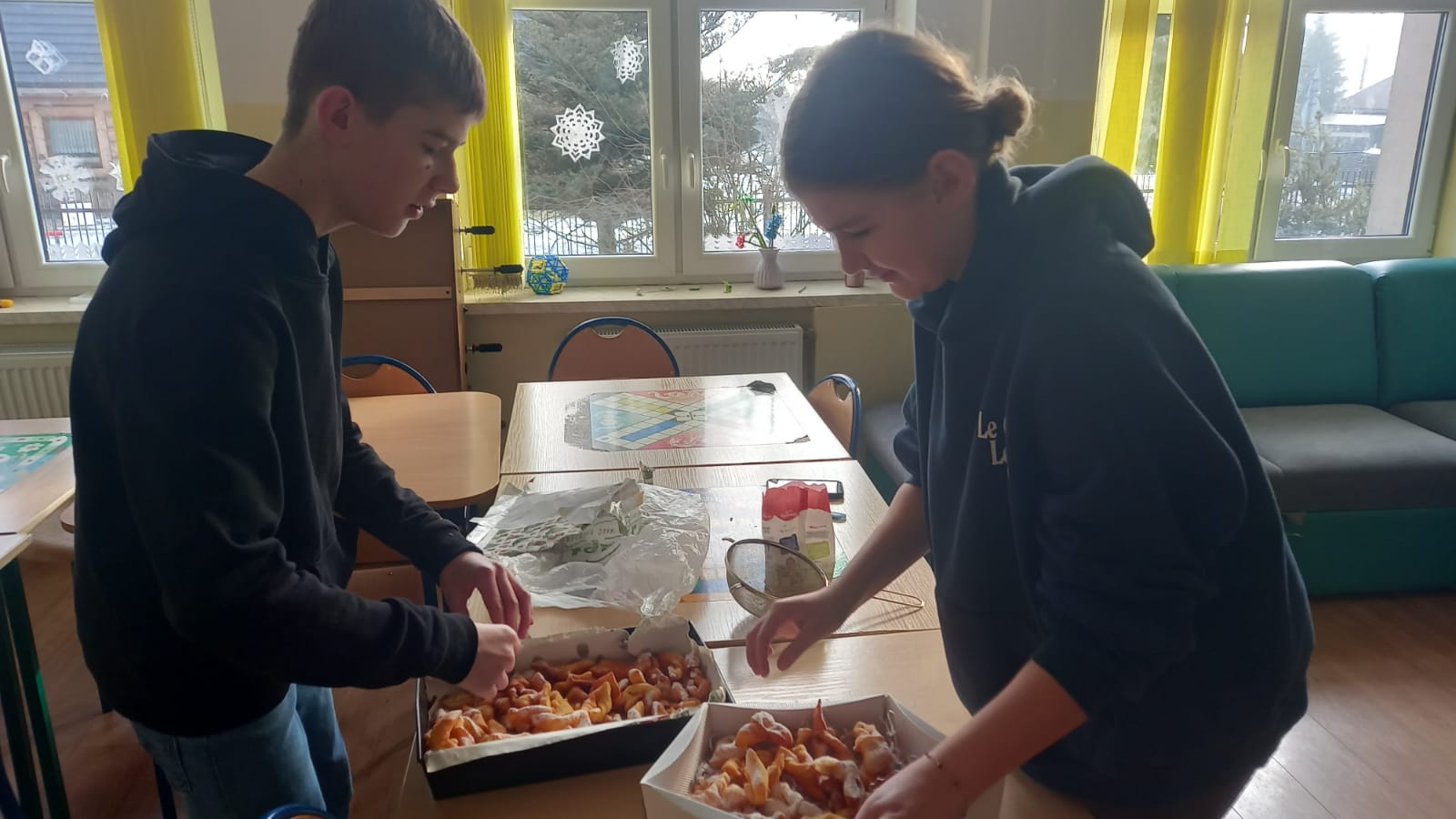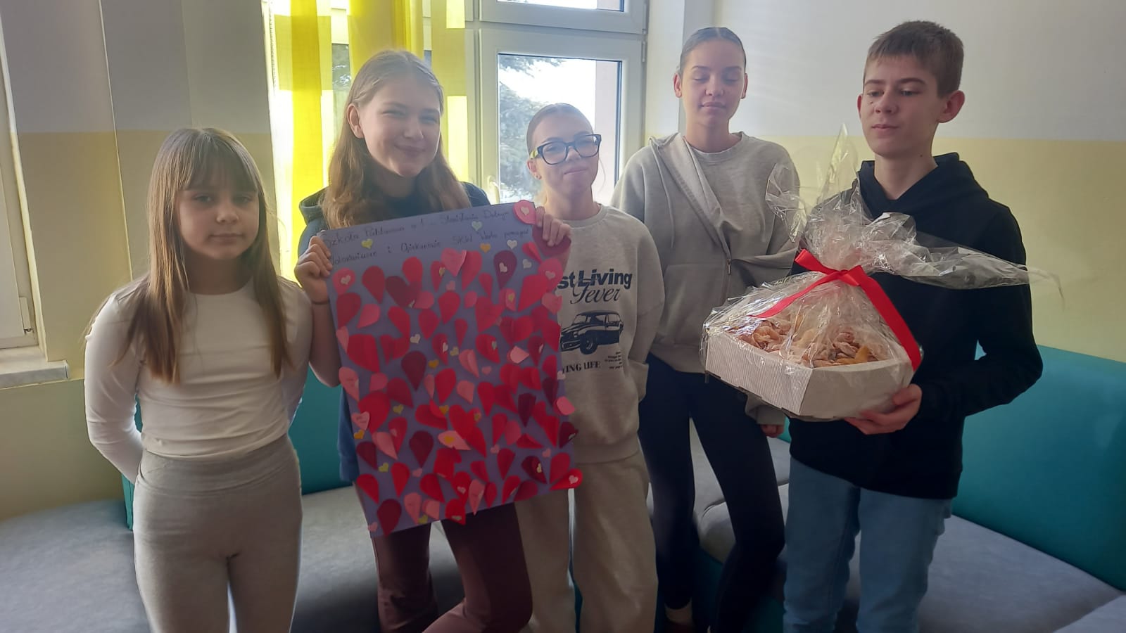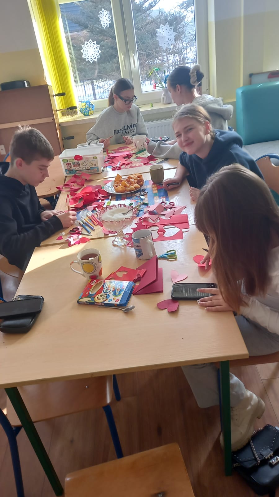 Wykonanie kartki walentynkowej oraz upieczenie ciasteczek dla pensjonariuszy DPS w Zebrzydowicach.
