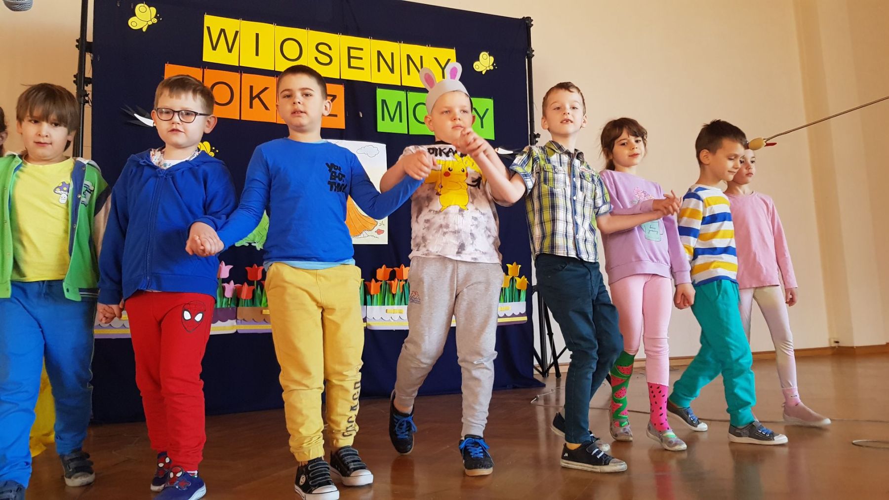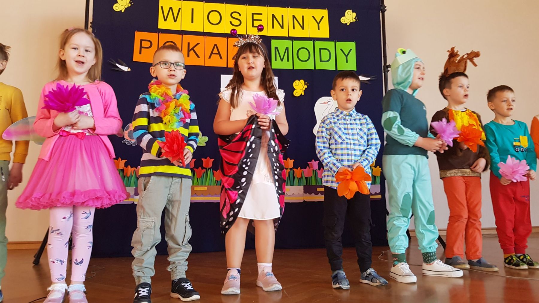 • Pokaz Mody Wiosennej – każdy uczeń przyszedł ubrany jak najbardziej kolorowo, wesoło i wiosennie. Uczniowie klas 0-3 zaśpiewali wiosenne piosenki i pokazali swoje stroje na scenie. Uczniowie klas 4-8 przeszli klasami po scenie prezentując modę wiosenną.