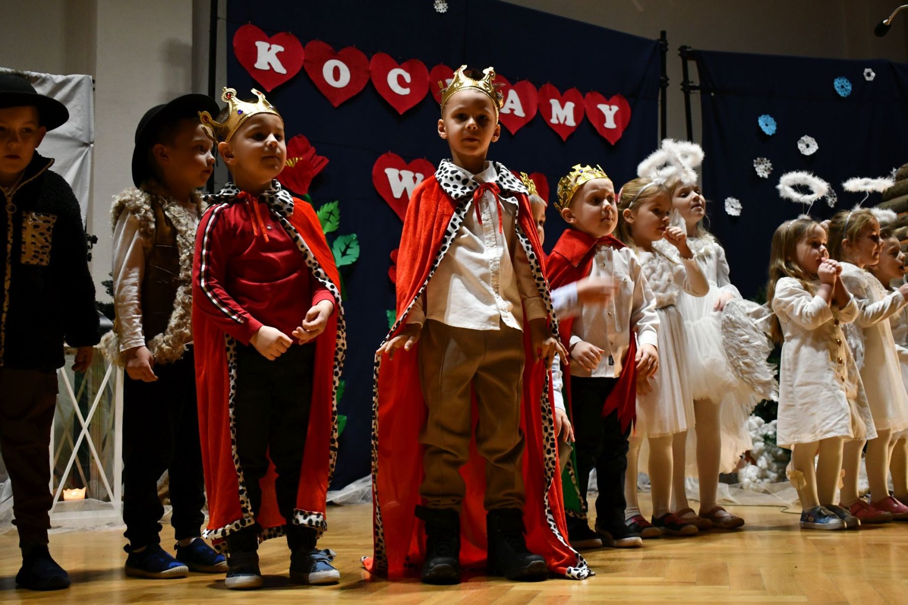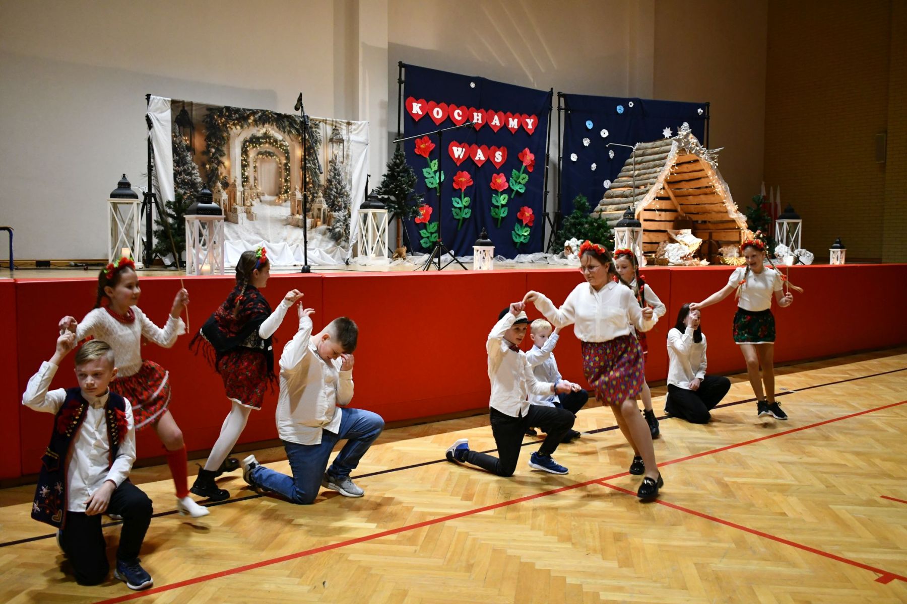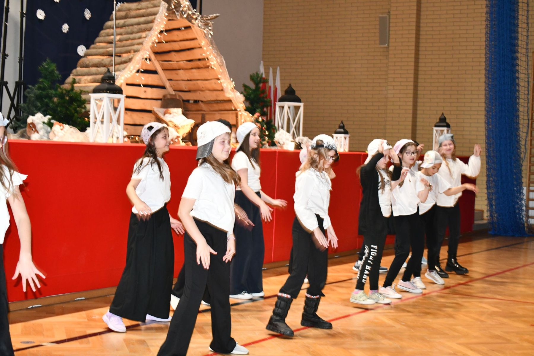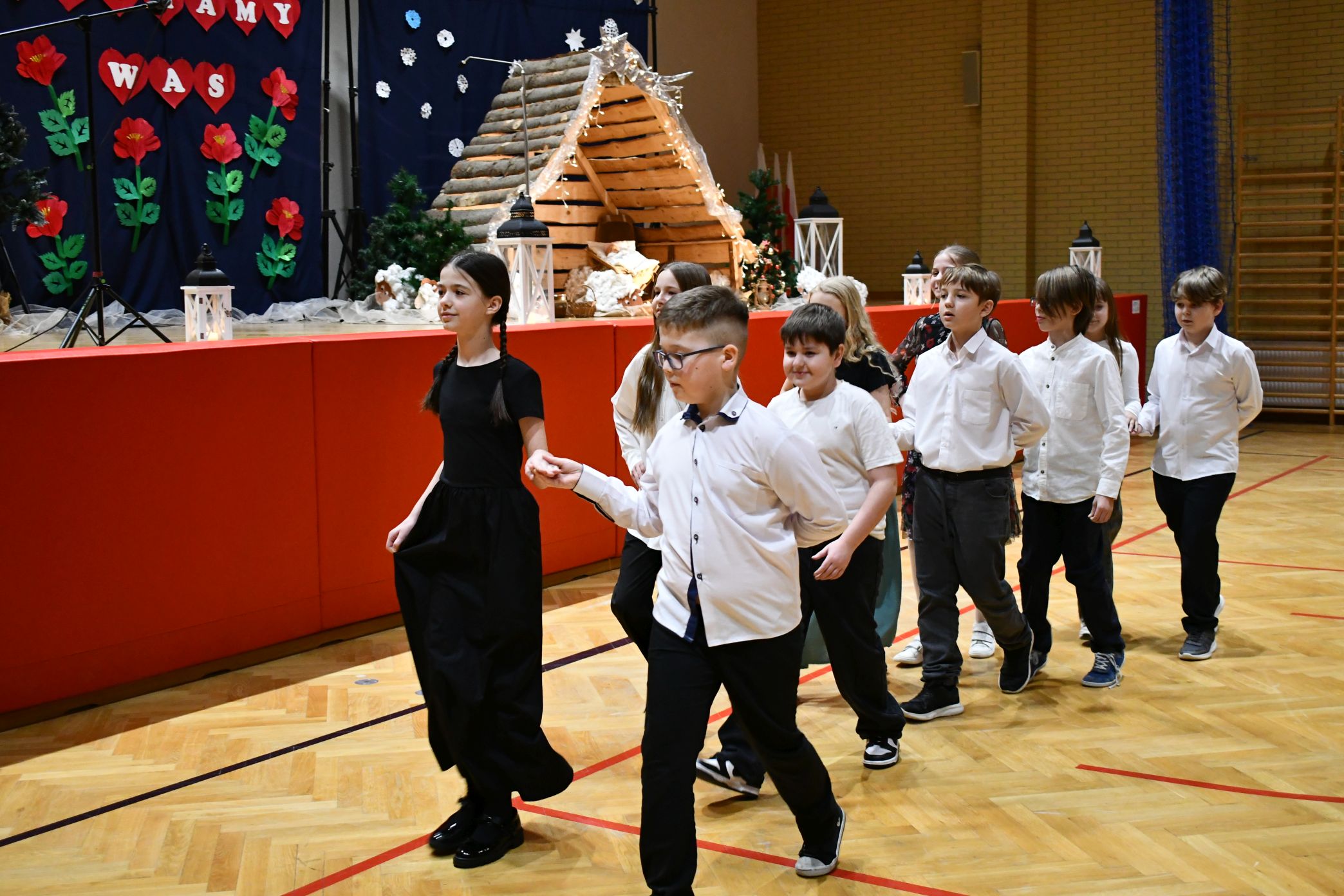 Uczniowie naszej szkoły pod kierunkiem swoich wychowawców przygotowali piękną uroczystość. Złożyły się na nią kolędy i pastorałki. Goście obejrzeli także pokazy taneczne w wykonaniu swoich wnuków. W trakcie uroczystości babcie i dziadkowie mogli podziwiać swoje pociechy w różnych formach artystycznych. Mali artyści z przejęciem odtwarzali swoje role, a czcigodni goście ze wzruszeniem odbierali czułe słowa, kierowane pod ich adresem. Atmosfera była wspaniała, podziękowaniom nie było końca. Dzieci poczuły się prawdziwymi gospodarzami szkoły.