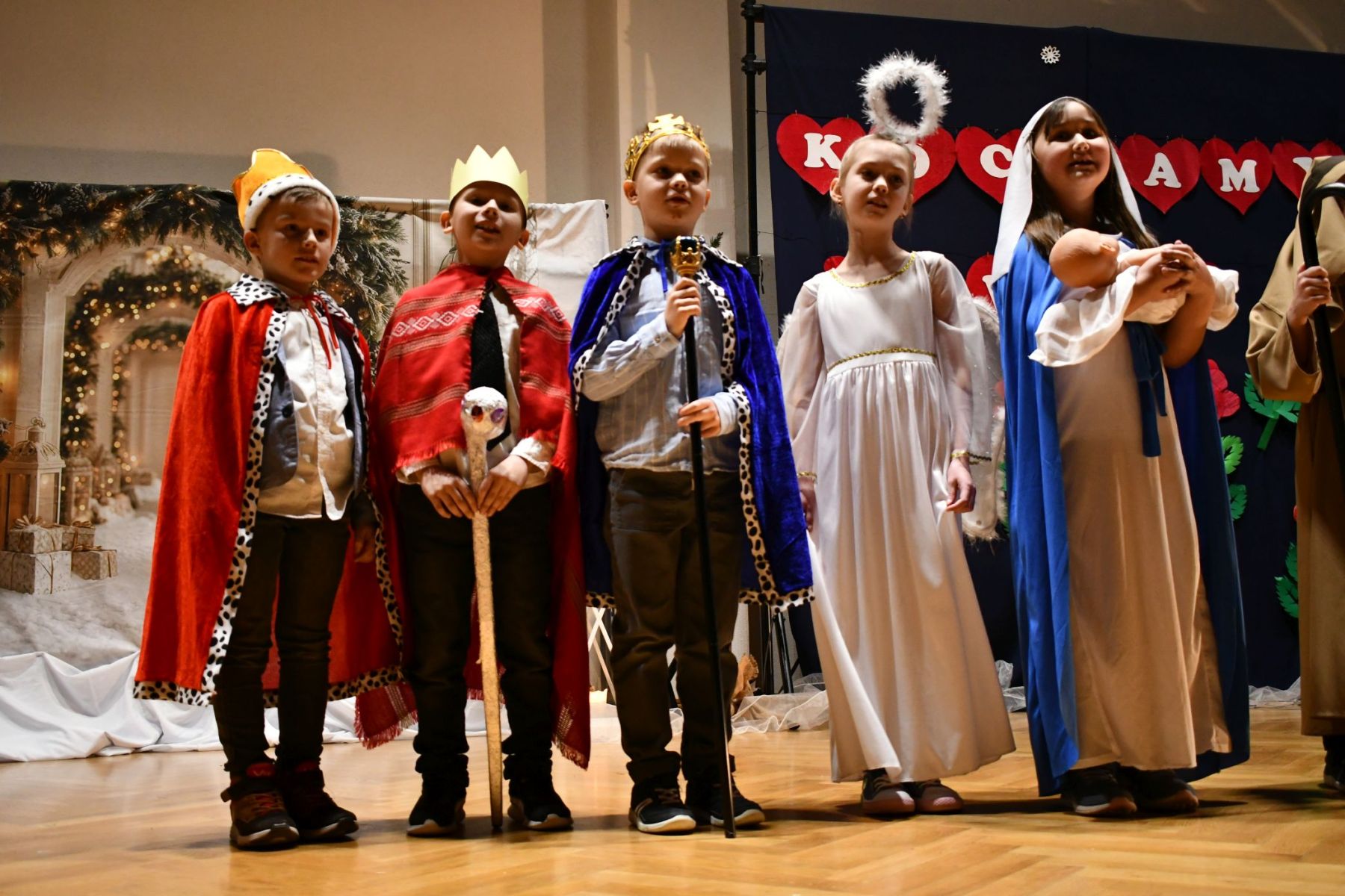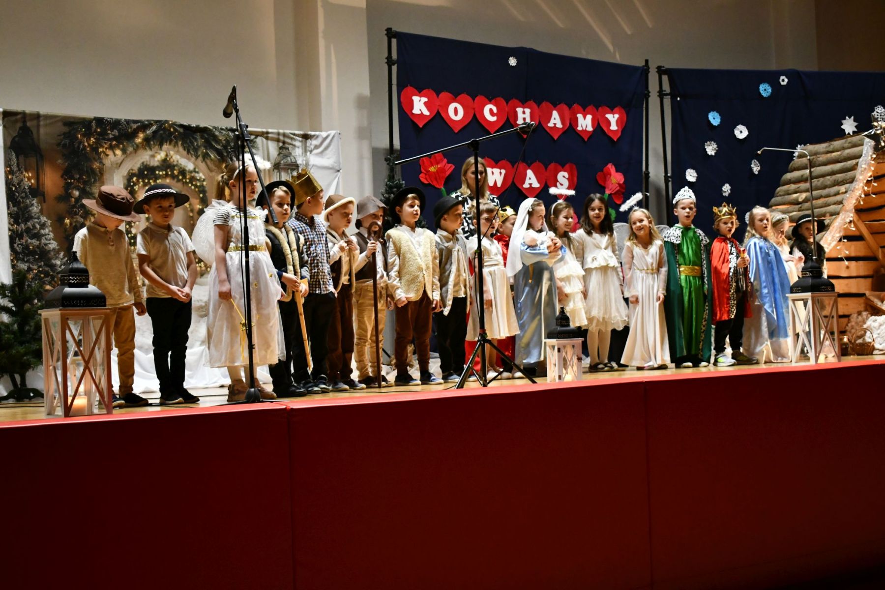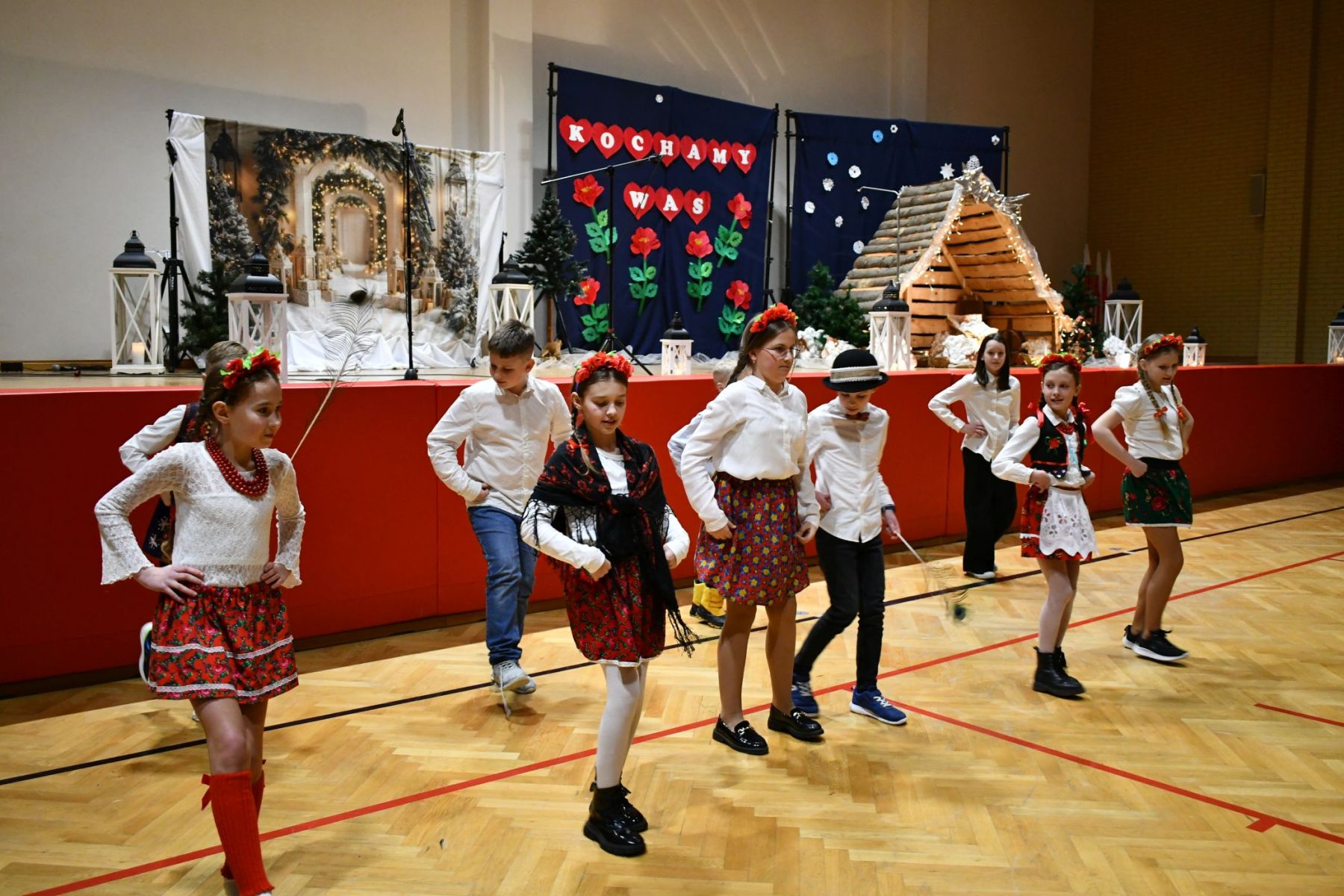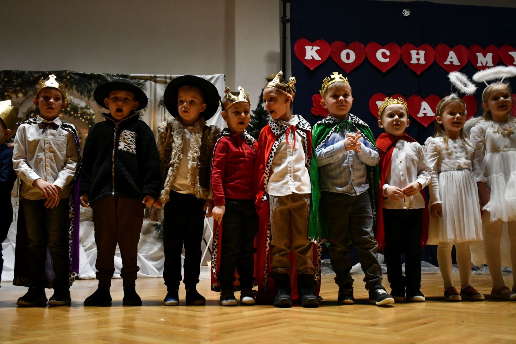 Uczniowie naszej szkoły pod kierunkiem swoich wychowawców przygotowali piękną uroczystość. Złożyły się na nią kolędy i pastorałki. Goście obejrzeli także pokazy taneczne w wykonaniu swoich wnuków. W trakcie uroczystości babcie i dziadkowie mogli podziwiać swoje pociechy w różnych formach artystycznych. Mali artyści z przejęciem odtwarzali swoje role, a czcigodni goście ze wzruszeniem odbierali czułe słowa, kierowane pod ich adresem. Atmosfera była wspaniała, podziękowaniom nie było końca. Dzieci poczuły się prawdziwymi gospodarzami szkoły.